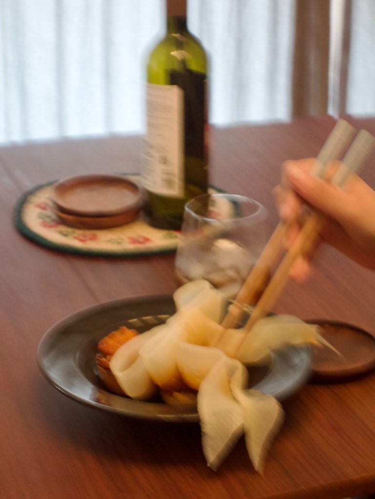For Ludi, spicy flavours evoke a profound sense of home. While the spiciness differs in character, the combination of Korean-style fried chicken and danmuji-pickled radish reminds the curator of Ludi's practice, which explores urban ruins and ghost signs, linking these elements to history and heritage. The interplay between the ephemeral, ghostly aspects and the rooted cultural heritage served as the inspiration for this dish.